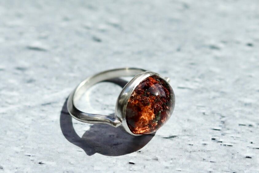 ガーデンクォーツは水晶の内部に他の鉱物が入り込むことで、まるで景色や、庭園のように美しく見える石。クリアな水晶の中に見える秋色の景色がとても綺麗です。