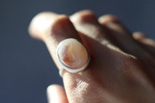 メノウの中に桜の花びらような内包物が入っている、桜メノウ。